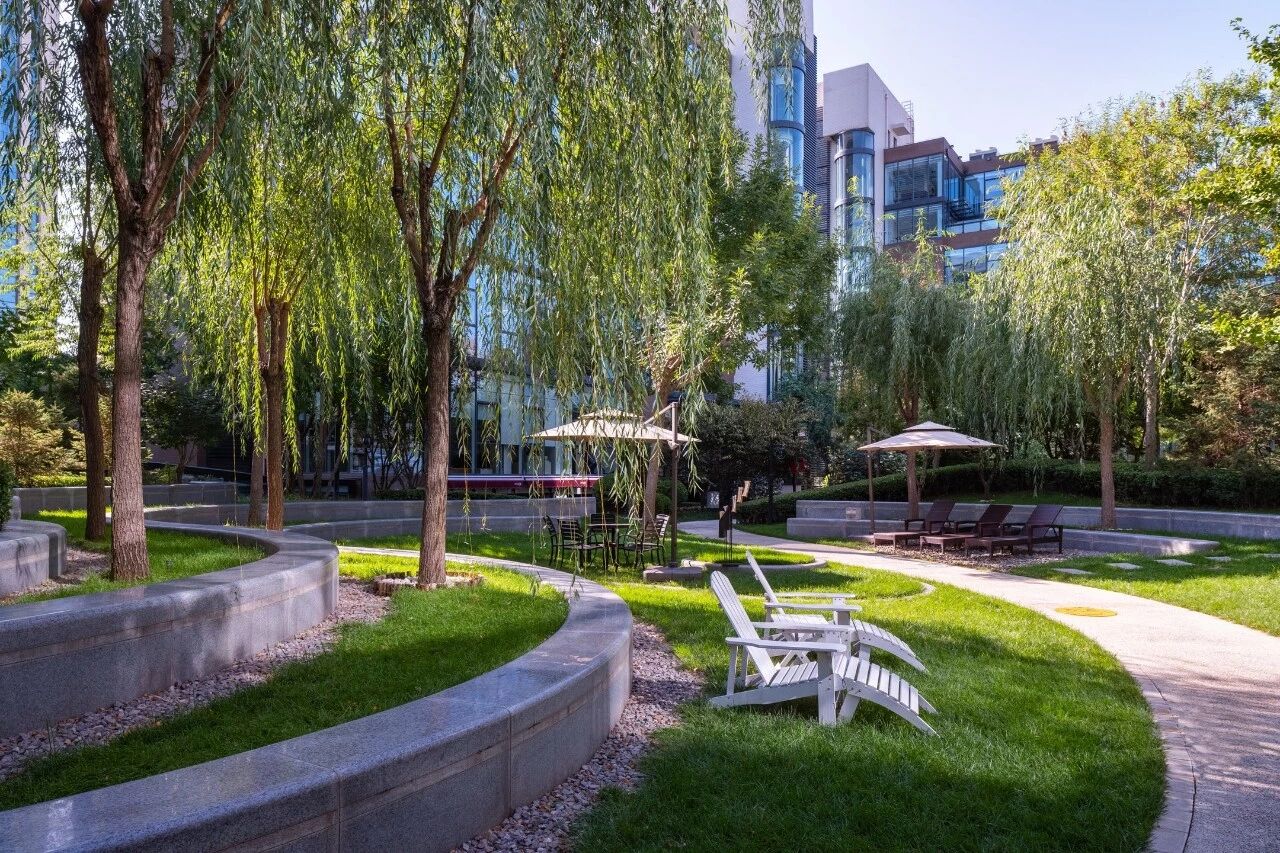 “园区容纳了30多家公司,不仅地下有这样一个主打阅读的休憩空间,楼间起伏绿地中也布置了各式、各色的椅子,你可以带着书晒太阳。”